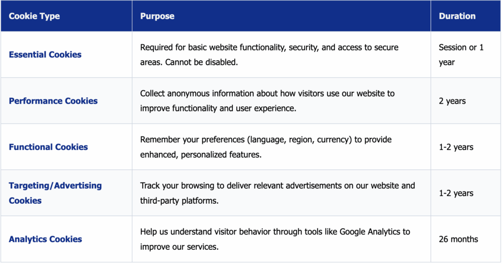 - Cookies and Tracking Technologies: Information stored through cookies, web beacons, and similar technologies